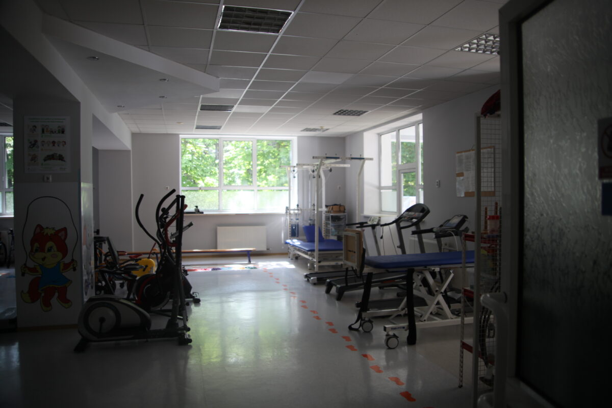 Activitatea Secției este desfășurată în spații înzestrate special pentru realizarea procesului de reabilitare: birourile medicilor (reabilitolog, kinetoterapeut), săli de kinetoterapie, fizioterapie, termoterapie, bazin, sală pentru terapie ocupațională, sală sportivă, cabinet de masaj, cabinet pentru stabilometrie, sală de protezare, teren de joc și sport.